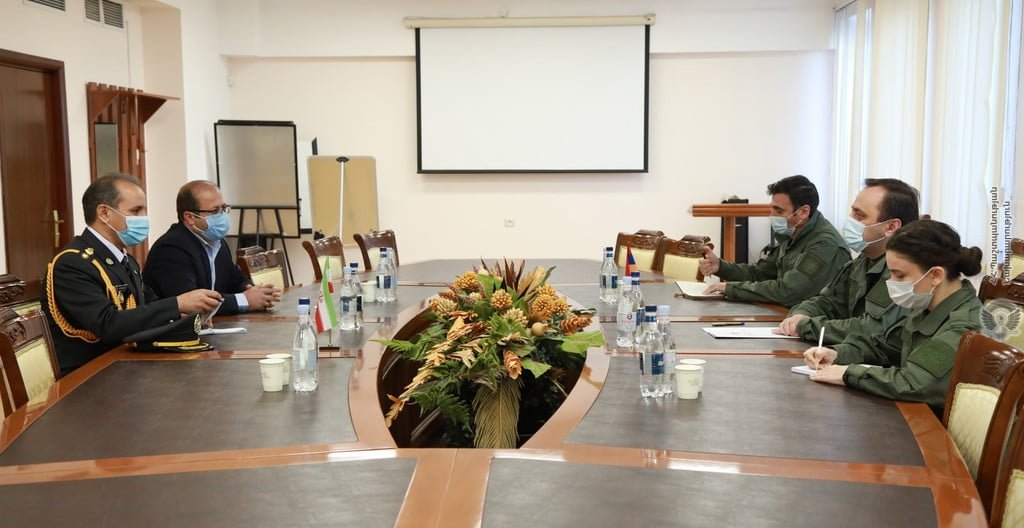 “The head of the General Department of Defence Policy and International Cooperation of MoD Levon Ayvazyan met with the newly appointed military attaché of the Embassy of the Islamic Republic of Iran, Colonel Bahman Sadeghian.