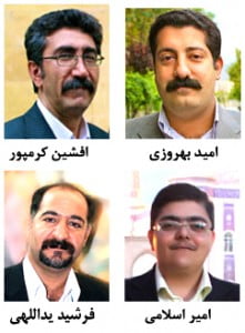 Mahdi Azizi, Najafabad. Mohamad Mosavi, Najafabad. Mansor Parva, Yasoj. Esfandyar Mohamadi Zadeh, Yasoj. Mohamad Keshavarzi, Noorabad. Pejman Kashefi, Abadeh. Salar Parhizkar, Shiraz.